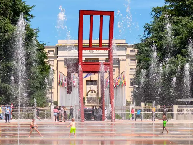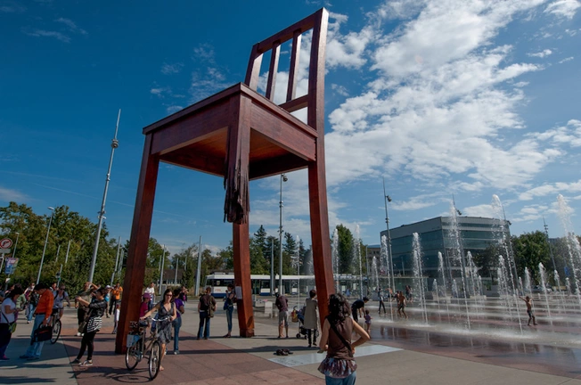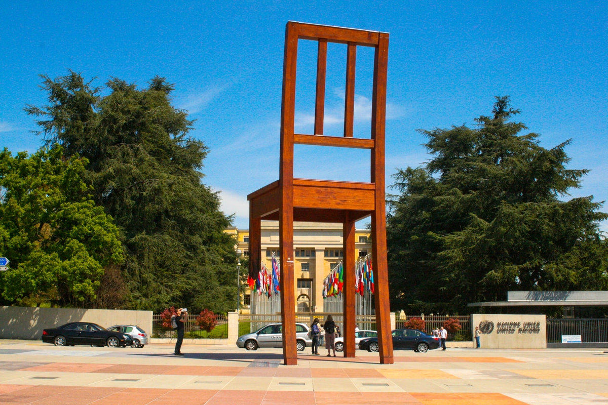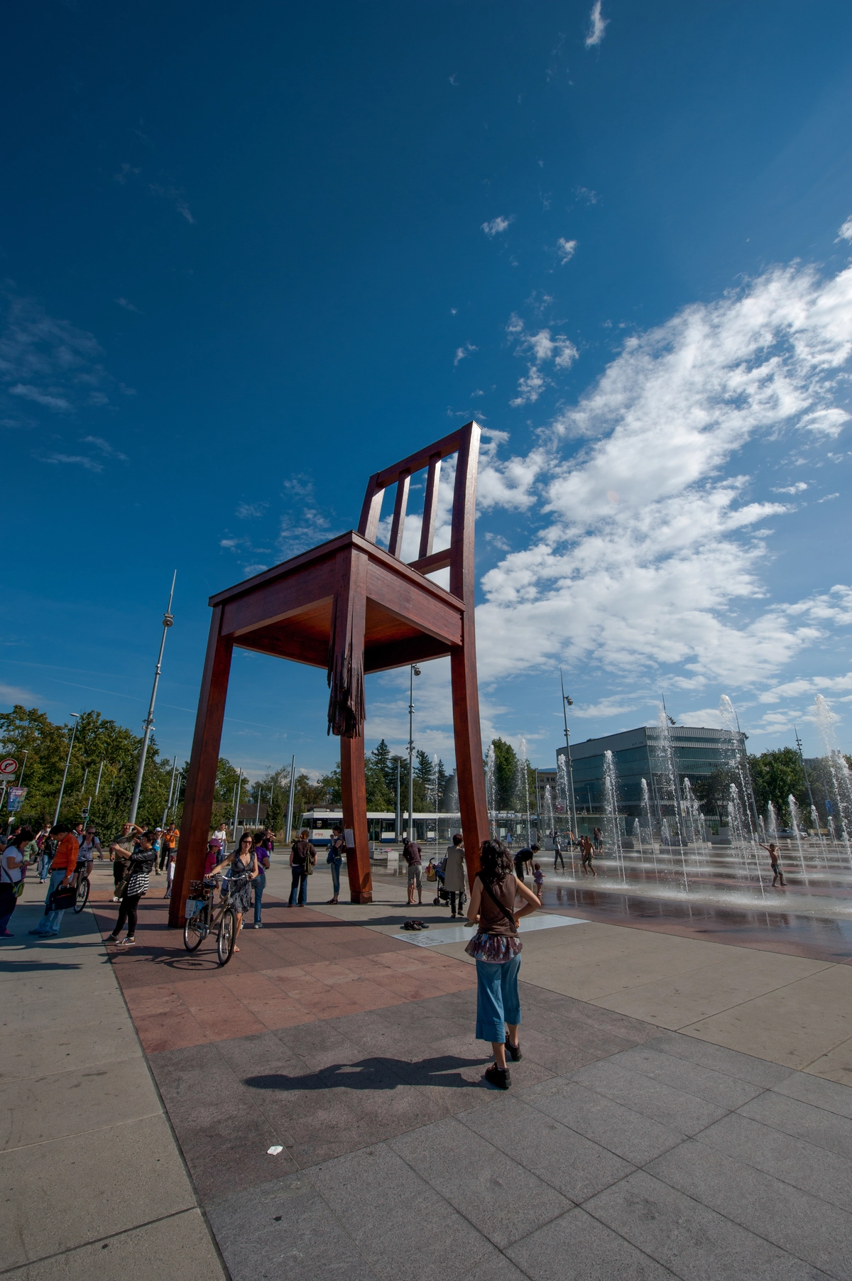 Broken Chair is the work of sculptor Daniel Berset. It was made in 1997 for the NGO Handicap International. Made out of 5.5 tonnes of wood and standing at a height of 12 metres, this impressive work of art has been dominating the Place des Nations since 1997. Its message is simple: remember the victims of landmines, urge your government to promote a ban on landmines. Think of making a stopover here before heading further to visit the international district.