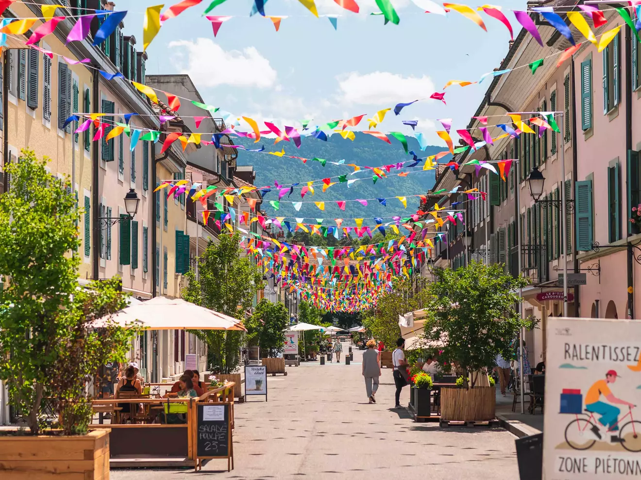 Located only 10 minutes from the centre, Carouge is Geneva’s Sardinian town. Did you know that the town was designed by Italian architects, who gave it its unique Mediterranean charm? Carouge is open to the world, tolerant and multicultural. It has been a centre for trade since the 18th century, developing around the savoir-faire of the craftspersons who installed their workshops in the courtyards. Jewellers, leatherworkers, opticians, ceramicists and florists enliven the tree-lined streets, alongside art galleries, busy terraces, and fashion and designer boutiques. The ambiance is lively and authentic.
