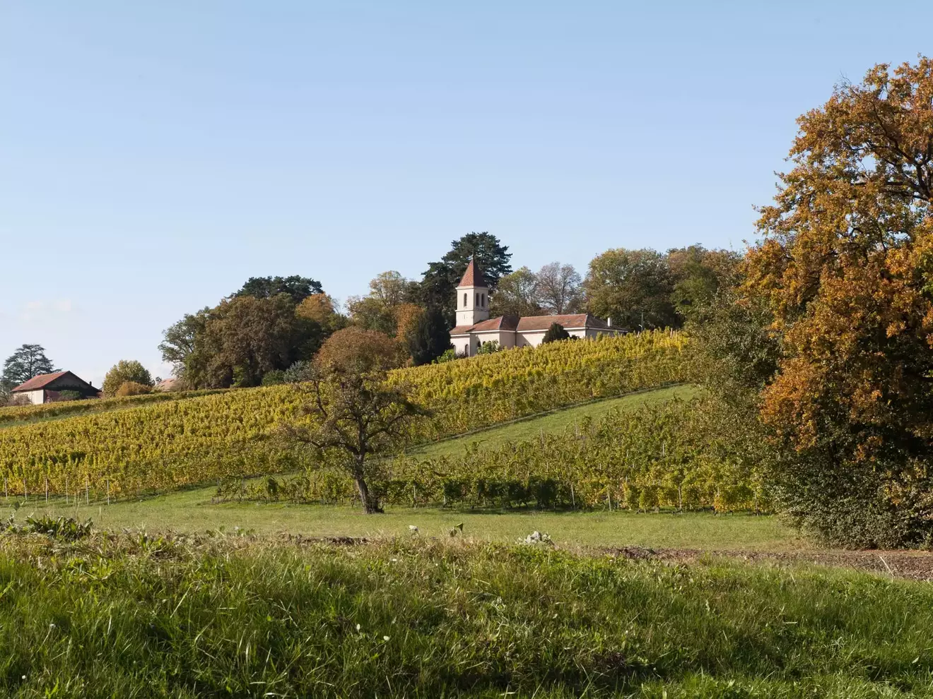 An outing to the magnificent Genevan countryside through the vineyards between the Arve river and the lake. From Hermance, you pass through the villages of Anières, Corsier, Gy, Jussy and Lullier to reach Choulex.