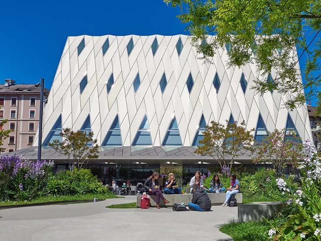 The MEG is an architectural symbol in the Plainpalais district. The MEG is a museum that addresses major issues facing human societies today and offers a perspective on global societal and environmental challenges. Its collections are to be discovered in magnificent exhibitions, whether permanent or temporary, which highlight the museum's treasures through fascinating immersive scenographies. The permanent exhibition offers a journey titled "Dialogue," which explores objects with ethical issues, such as stolen items, human remains, or sacred objects. This journey traces the exchanges with source communities to determine the legitimacy of their presentation. "Dialogue" will evolve over time, adapting to new research and collaborations. The permanent exhibition is complemented by another exhibition titled "Encounters," which examines the relationship between communities and museum collections. Through a series of portraits and interviews, individuals share their personal connections with objects from the MEG collections. In contrast to these historical testimonies, visitors can immerse themselves in societal issues by exploring temporary exhibitions. In 2017, the MEG received the prestigious EMYA Award, the European Museum of the Year Award, the highest distinction for a museum in Europe. Designed as a true cultural hub, the MEG offers a wide range of activities: performances, concerts, conferences, film screenings, workshops, and guided tours are just a sample of the experiences available to the public in connection with the exhibitions. It also features a café, a library, a music lounge, and a flower-filled esplanade.