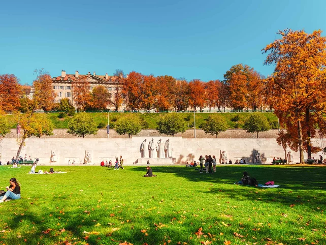 Parc des Bastions, Geneva’s oldest park, features rare trees, open-air events, the Reformation Wall, and life-size chess...