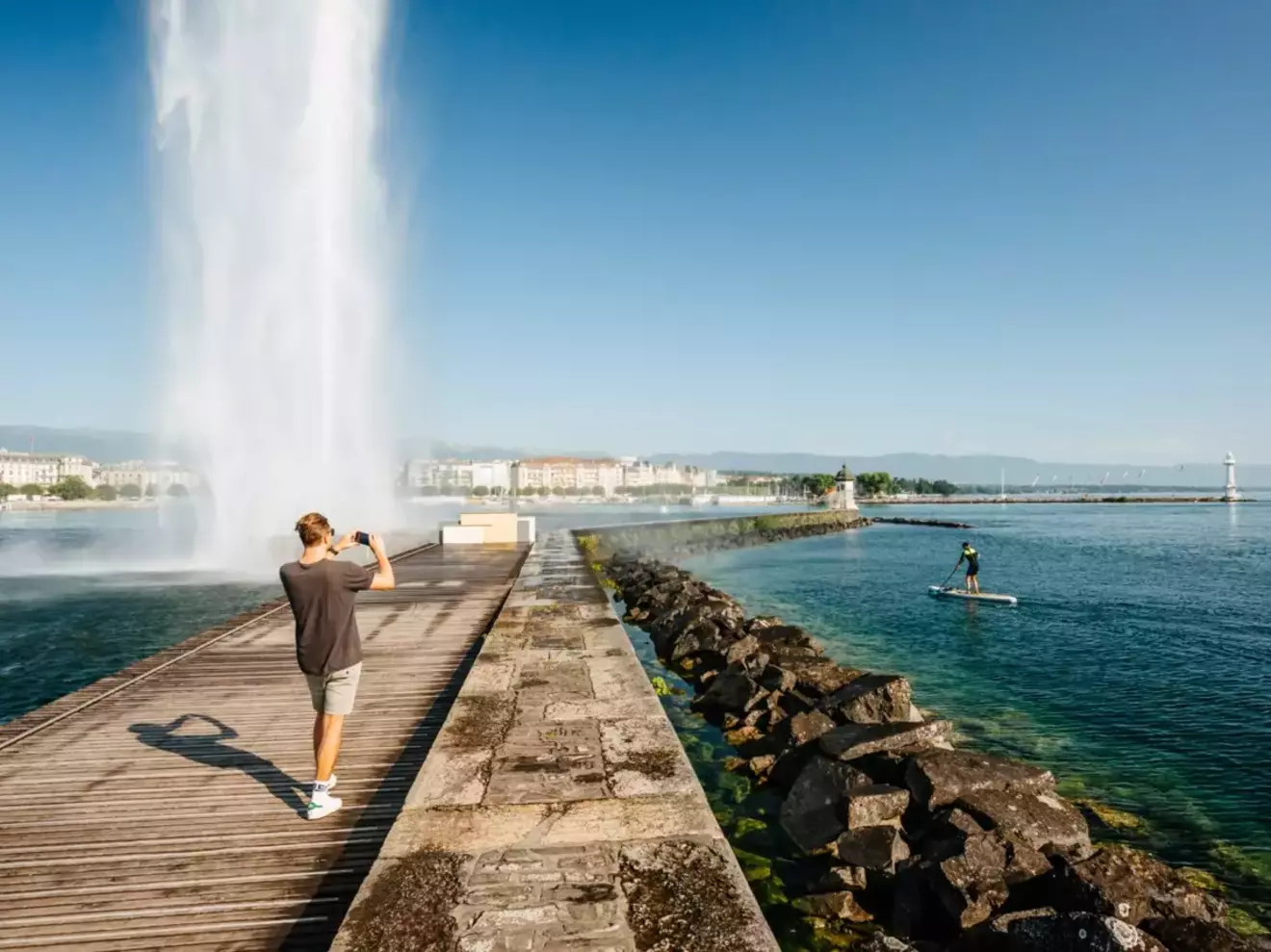 In this ideal place to admire Geneva’s harbour, sunbathe, or take a memorable selfie with the Jet d’Eau, lies a jewel of ingenuity: the mobile footbridge, designed especially for this project and which can turn into a staircase when boats pass underneath! If you want to see the Jet d’Eau live, take a look here.