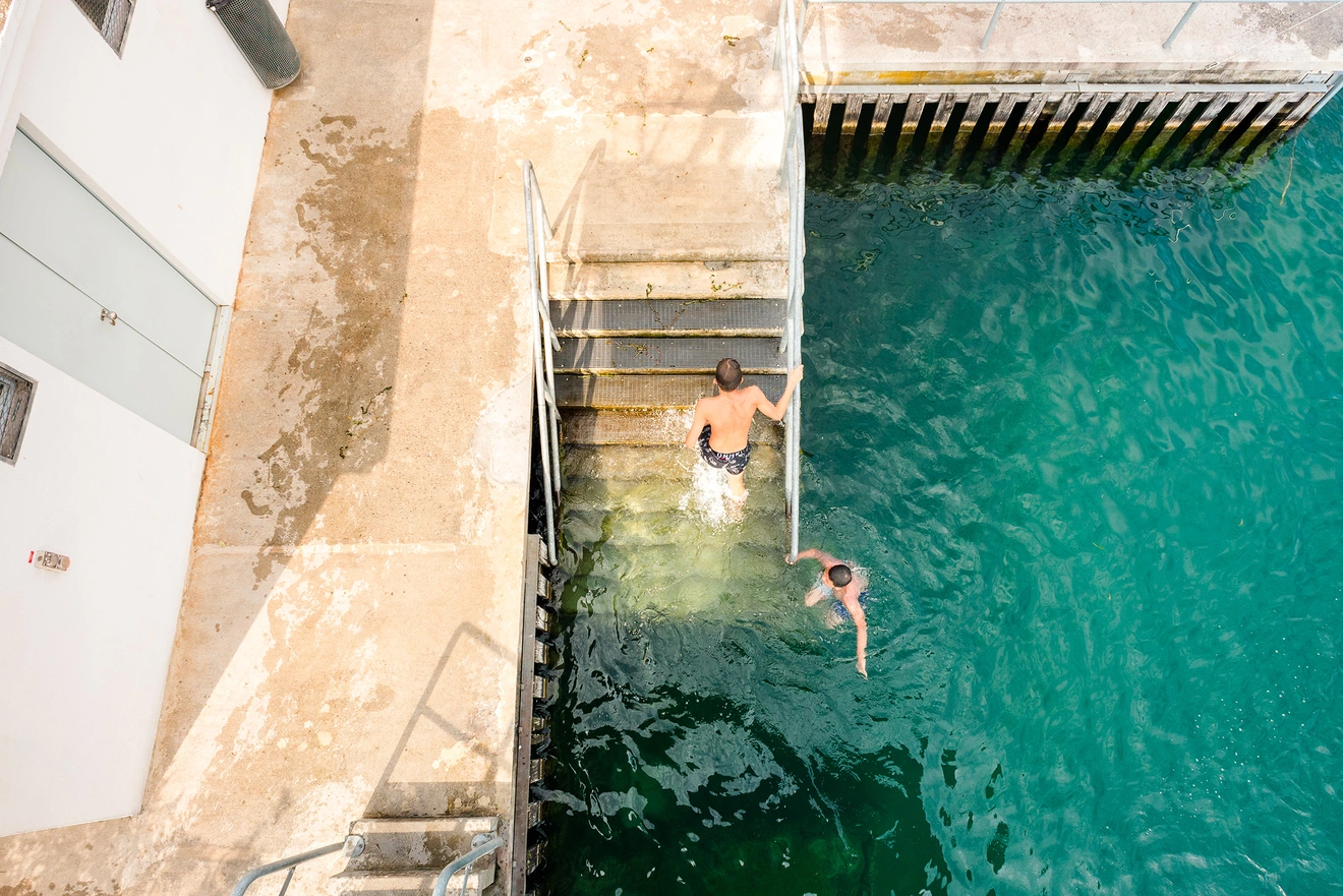 Die kreisförmige Plattform misst 40 Meter im Durchmesser und bildet eine Art schwimmende Insel auf dem See. Sie lädt zum Relaxen ein und bietet eine herrliche Aussicht, bevor man sich ins Wasser stürzt. Am selben Ort finden Sie auch einen 45 Meter langen Anlegesteg auf Pfählen, der die Badezone vom Hafenbereich trennt. Er liegt etwas ausserhalb der Stadt, ist aber mit den öffentlichen Verkehrsmitteln oder im Rahmen einer netten Fahrradtour entlang des Sees gut erreichbar.
