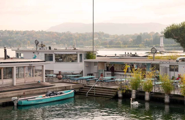 The first is Les Bains des Pâquis, which serves up one of the best fondues in Geneva in a chilled and friendly atmosphere. The heart of the lake, long tables, 360° views over the city and the waters are what makes this popular spot truly one-of-a-kind. Just pick up your plate and fondue set, tell them your name, wait for it to be called and a pot filled with delicious fondue will arrive. It's worth knowing that only cash is accepted here. But it is most definitely worth considering giving this unique and much beloved experience a go.